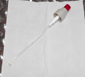 キャップを外して上の赤い所を押せば、勢いよくほぼ直線的に出てきます。これは、頭皮にきちんとかかるようにとのことだと思います。