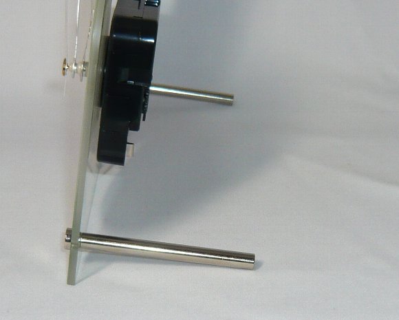 アクリルクロックを立てるのに金属製の棒2本の先をネジで開けて、本体に固定し再びネジで固定させます。