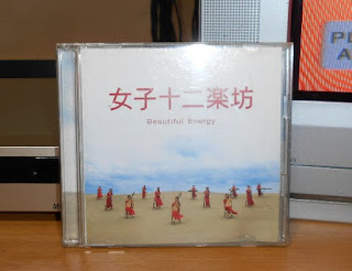 S端子の3色ケーブルでSANYOの平面ブラウン管TVにつなげます。DVDは女子十二楽坊の「Beautiful Energy」の付属で、タイトル画面を写してます。左側の「自由」プロモーションビデオを選択しました。